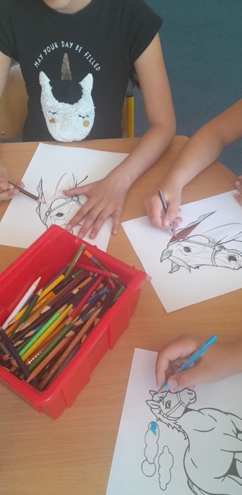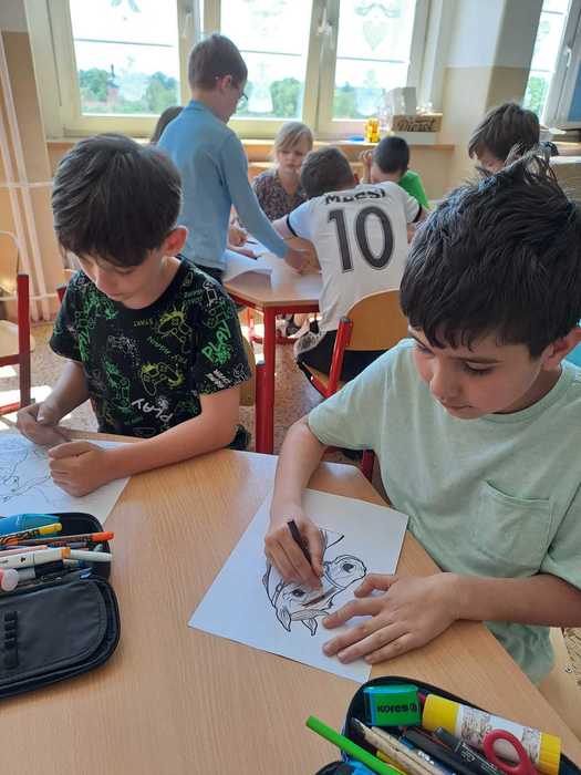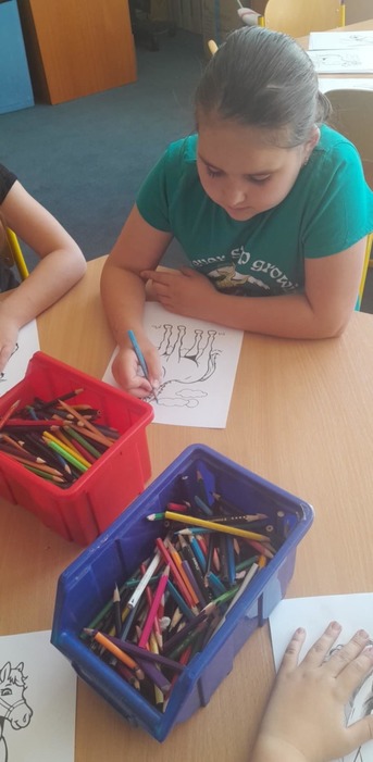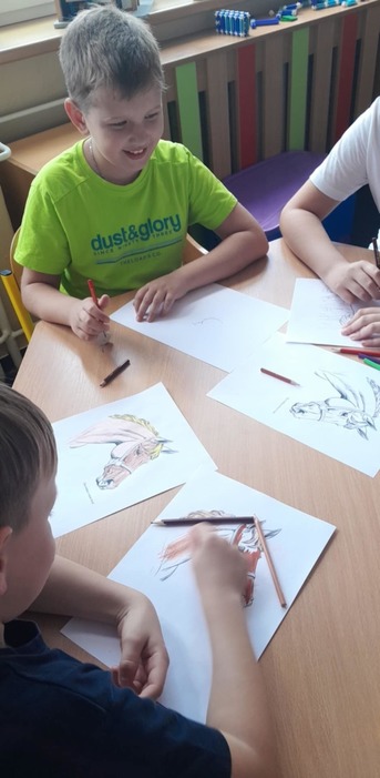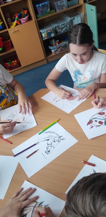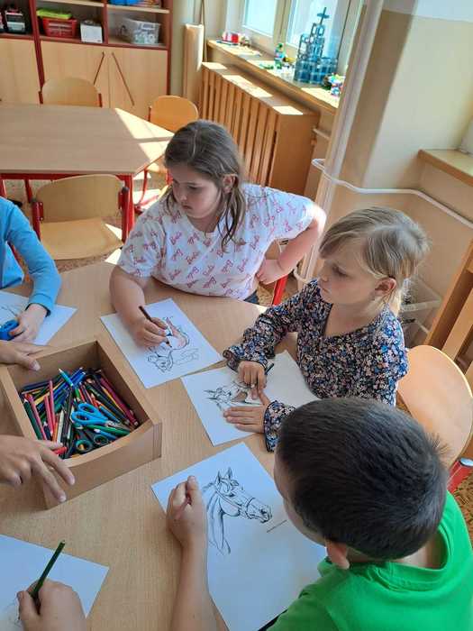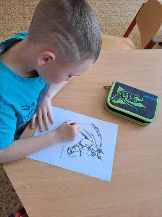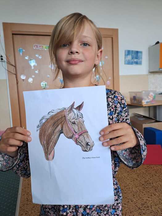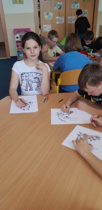 15.5.a 16.5. proběhl ve školní družině projekt DEN KONĚ. Jeden den jsme si vyprávěli o koních, děti kreslily a vybarvovaly omalovánky. Druhý den měly děti pěší výlet, kde viděly živého koníka, svezly se na povozu a mohly si koně prohlédnout a pohladit.