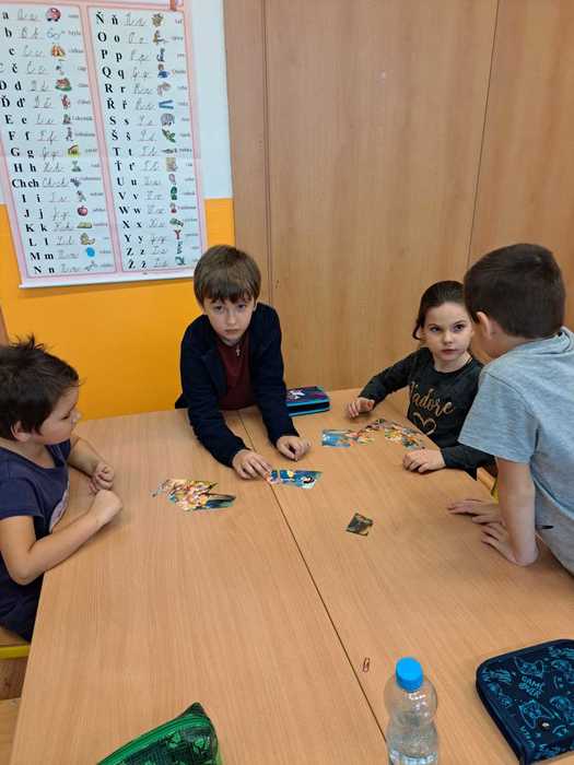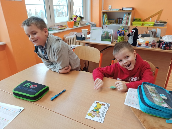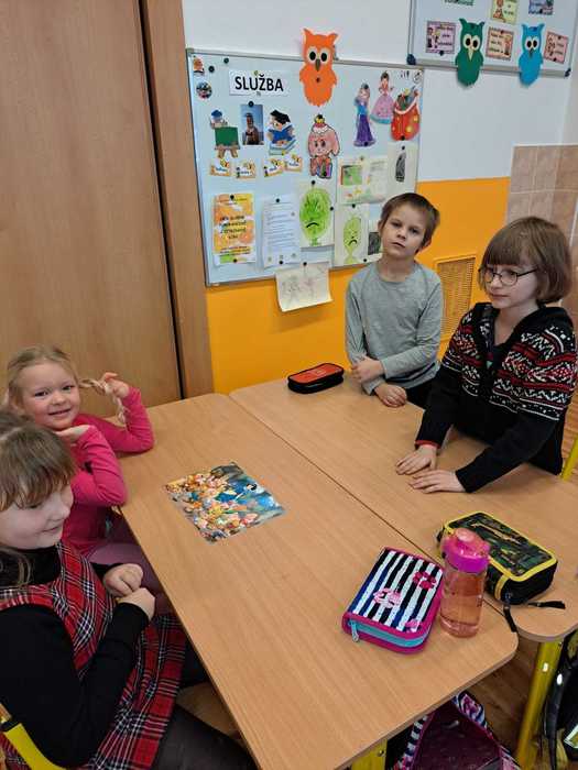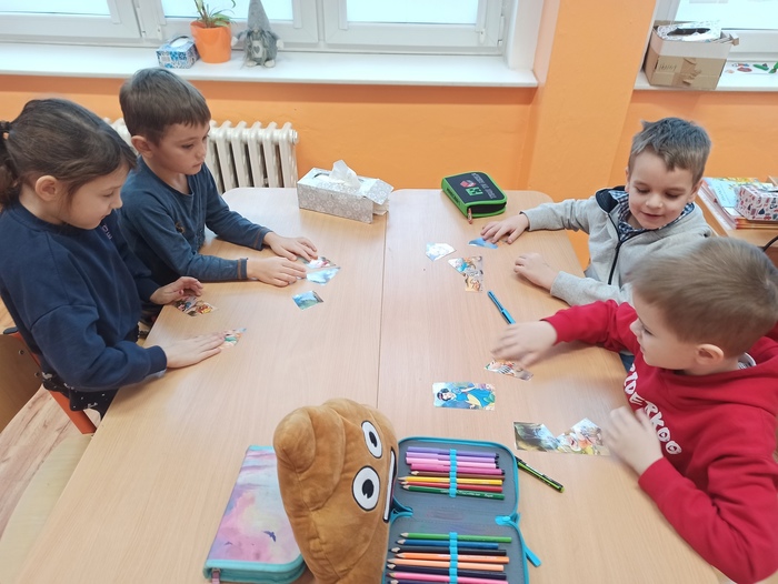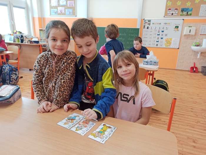 Ve středu 31. ledna naší základní školu navštívili předškoláci z mateřské školy. Předškoláků se ujali žáci z 1. a 2. třídy, kteří jim napomáhali v řešení zadané práce na téma Sněhurka a sedm trpaslíků. Připravené aktivity si děti a žáci velmi užili.